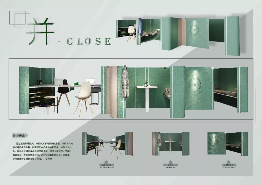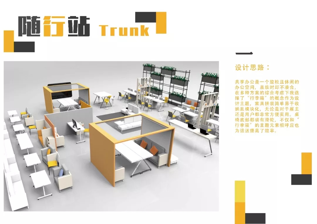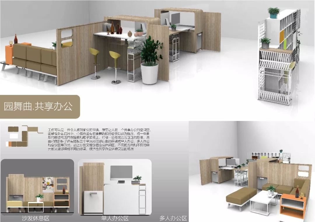 作品的策劃與大賽主題的整體關系,有清晰的創(chuàng)作概念示意圖,滿足共享辦公的需求。