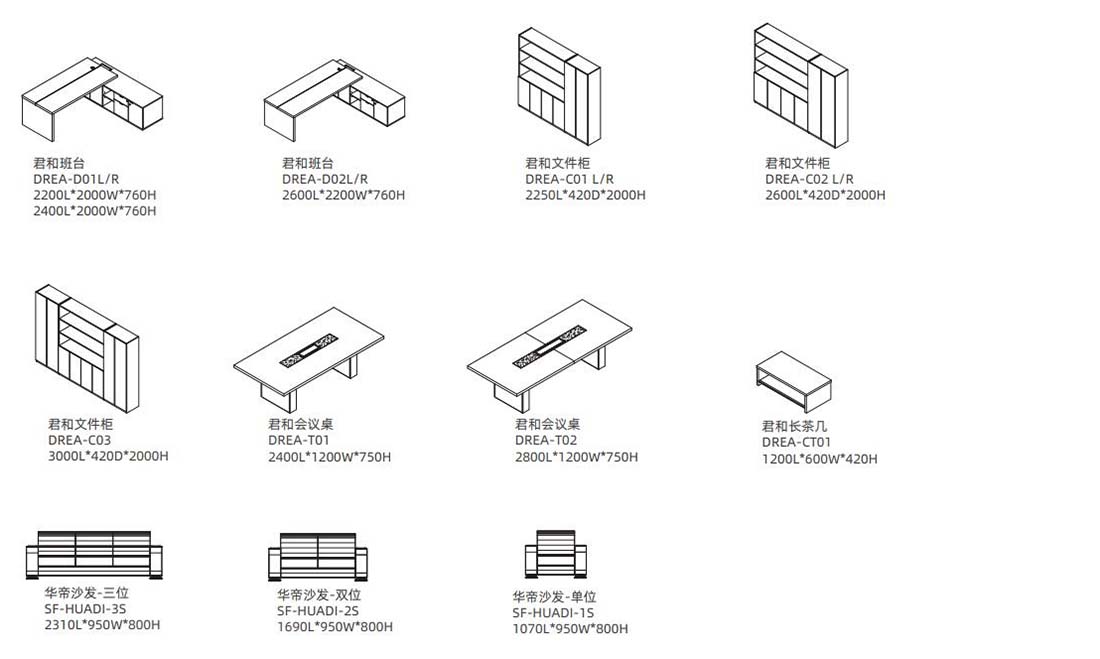 會(huì)議桌基礎(chǔ)造型與班臺(tái)類似,中部使用深色實(shí)木貼皮。桌腿為實(shí)木材質(zhì),中間為走線系統(tǒng),中間雙側(cè)翻蓋金屬線盒,滿足多方位使用者的需求。